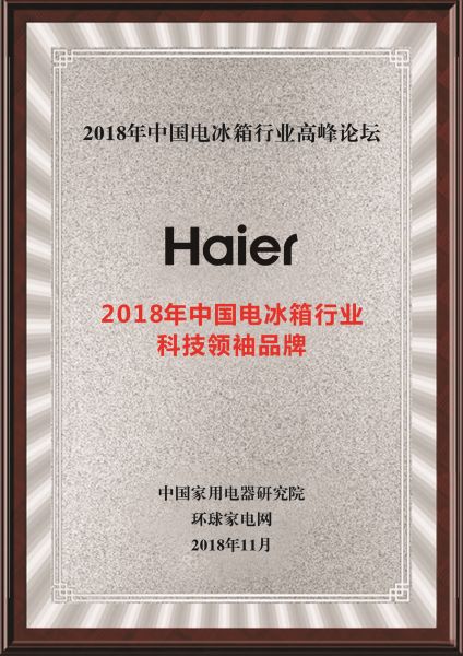 2018中国电冰箱行业高峰论坛:海尔获科技领袖品牌奖