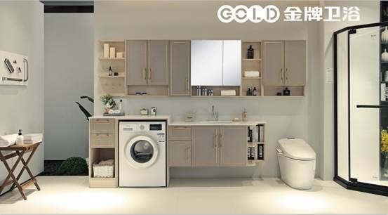 在金牌卫浴的全卫定制案例下,通过对消费者使用需求的完美解决,卫生间集合了洗衣、置物、淋浴、如厕等多种需求,定制的淋浴房能实现干湿分离,确保了这一系列功能集合在一个空间里相互不干扰。