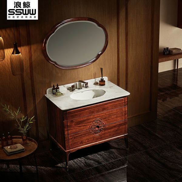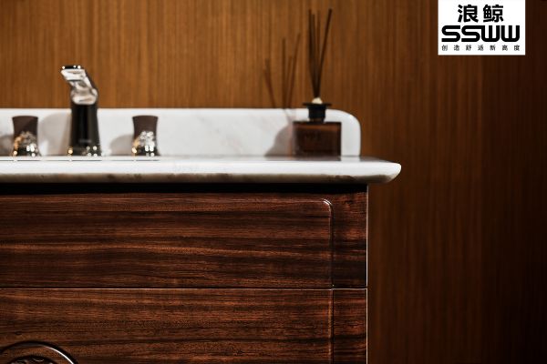第二十届中国专利奖获奖作品——君合系列浴室柜,轻中式格调相融于每个结构,实现了传统与创新、艺术与实用、古典与现代间恰到好处的结合。符合人体工程学原理及人性化储物设计的要求,细节处解决用户痛点。可调节的柜脚轻松应对浴室高低地面,最高可调75px。侧柜内侧门框与玻璃交接的“金银”色交错精裱线,让灰尘无法渗入玻璃缝隙,减轻清洁难度。