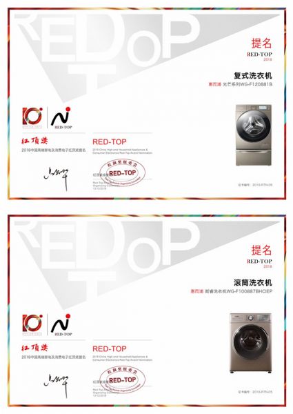 被誉为“高端家电潮流趋势标杆“的红顶奖由中国家用电器协会指导举办,近10年来以其公平性、专业性和权威性成为各大品牌竞相角逐的年度大奖。所有入选产品都历经消费者投票、媒体评审、专家评审及综合评定的严苛流程,从技术先进性、外观设计、节能环保、市场影响力和使用体验等5个不同维度进行全面评审。此次惠而浦获红顶奖提名的两款洗衣机产品:光芒洗衣机WG-F120881B和新睿洗衣机WG-F100887BHCIEP,从参评的39个品牌、共计200余款产品中脱颖而出,获得近20万消费者投票,再一次表明消费者和行业专家对惠而浦产品的认可和喜爱。