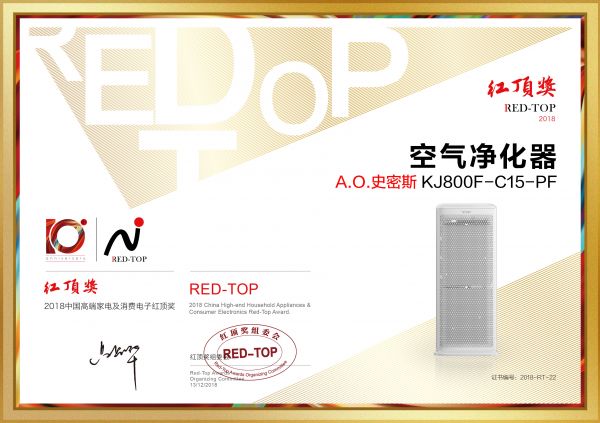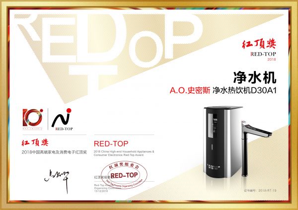 在本年度的评选中,凭借着卓越的产品创新能力以及对中国高端家电发展趋势的精准洞悉,A.O.史密斯两款创新精品:净水热饮机和甲醛净化器, 荣获家电行业至高荣誉——"红顶奖"。
