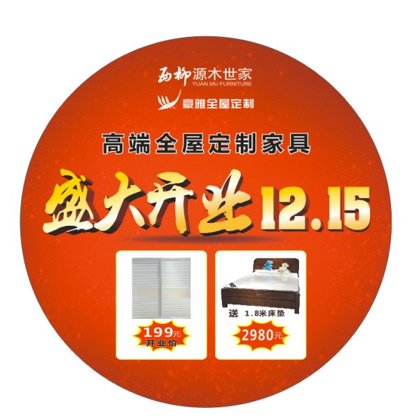 12月15-16日,位于成都市佳灵路265号世华国际家具城1楼12号的西柳源木世家“豪雅全屋定制”西南旗舰店将盛大开业。届时,9.9元就可买实木家具,全场半价购家具,交完全款可享受折上9.5折。