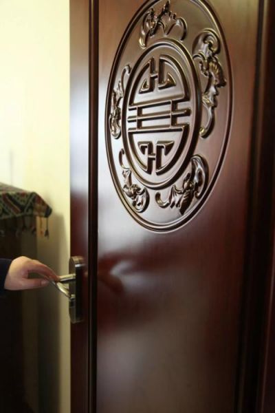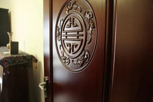 A:这个是我在千川定制的木门图样,上面有五只蝙蝠,它寓意“五福”,我专门找门店小黄做的,你看这雕花多细腻嘞,凹凸讲究,做工一看就晓得是牌子货才做得出来的。