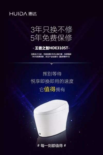 认真的对待消费者的每一个需求,是惠达获得消费者信赖与口碑的重要保障。随着智能马桶在城市中的普及率越来越高,成为了很多人家中浴室装修的首选,然而不少消费者在购买之前心有顾虑。惠达在严把产品质量关的同时,推出“3年只换不修,5年免费保修”的售后服务,不但可以让消费者消除顾虑,用的更放心、更舒心,还可以为消费者节省维修的时间和成本,全面提升了客户的消费体验。