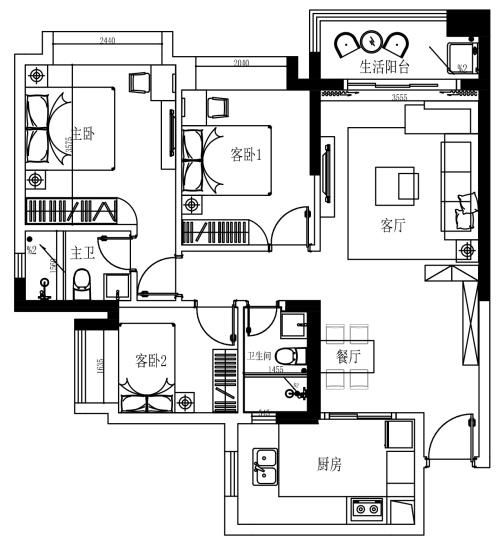 这是我们家的户型图,我家是3室2厅1厨2卫,我们家常住的就是三个人,然后父母会偶尔过来住一下的,所以空间还是很足够的。