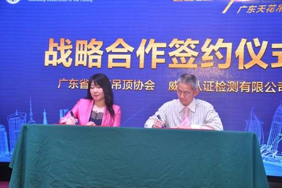 为进一步强化广东省天花吊顶协会的社会影响力、公信力,广东省天花吊顶协会执行会长马彩宣女士作为代表,与威凯认证检测有限公司举行了战略签约仪式。
