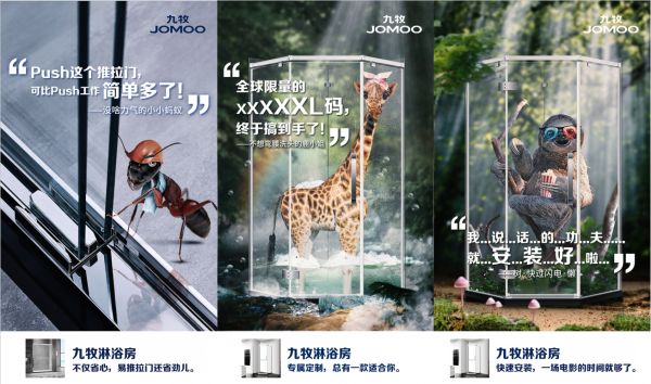 这次营销动作表面上是对动物买家的贴切刻画,实际上显示出九牧对产品和场景运用的品牌理念。无论是使用淋浴房还是其他厨卫产品,都反应的是一种生活方式的选择。专注于产品全方位细节的九牧,通过打造动物买家秀海报的营销动作,揭示出了九牧“懂你所需,给你所想”的产品理念。