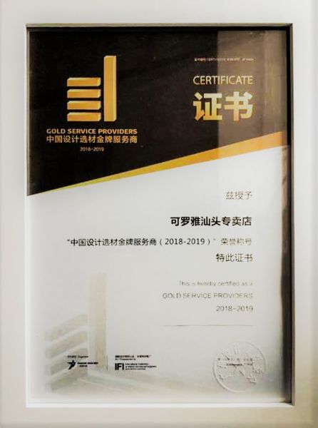 依据最新参评规则,最后再进行榜中榜终评,可罗雅墙布坚挺进入最后百强,参选的可罗雅汕头专卖店荣登“中国设计选材金牌服务商(2018-2019)TOP100”。