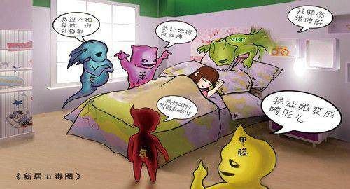 ▲家居装修中产生的污染物主要有5种: 甲醛、苯、氨气、放射性氡、TVOC(总挥发性有机化合物)。甲醛和苯是其中最常见、危害最大的两类污染物(图片来源于网络)