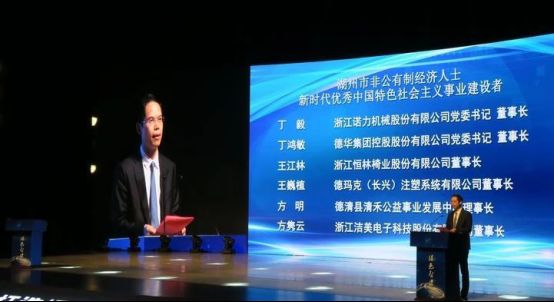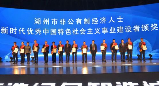 丁鸿敏董事长荣获“湖州市非公有制经济人士新时代优秀中国特色社会主义事业建设者”称号