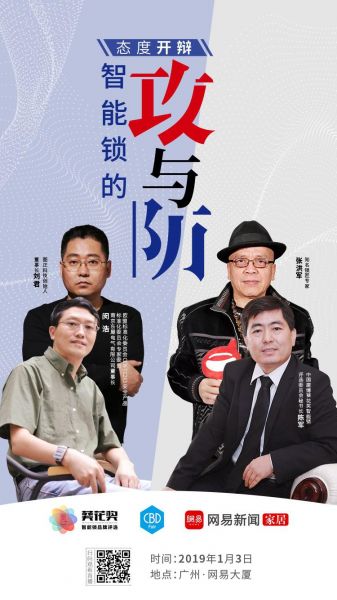 1月3日,锁匠功勋人物张洪军老师(葵花奖特聘专家)、中国建博葵花奖智能锁评选委员会聘任专家南京东屋电气公司总裁闵浩、上海图正信息股份公司董事长刘君和中国建博葵花奖智能锁评选委员会秘书长陈军四位嘉宾齐聚广州网易大厦,态度开辩“智能锁的攻与防”,并连线上海质量监督技术研究院的何曙博士,共同探讨智能锁标准。