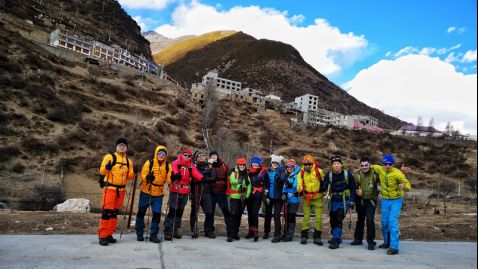 1月3日,登山队员开始踏上前往四姑娘山大峰征程。历时3天,这支跨界组合的攀登团队翻山越岭,克服高原反应,最终到达顶峰,享受攀登的奖赏。出发前,全队成员从海拔3400米沿着四姑娘山镇爬升到3940米,进行了1天的专业登山训练,为登山做好充足的准备。