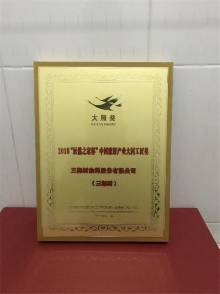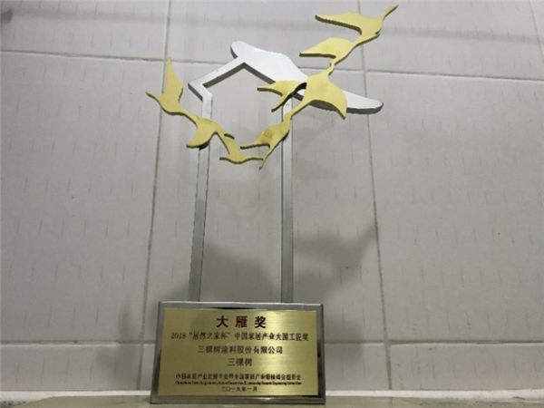 大雁奖是中国家居产业最为重量级、关注度最高的奖项之一,被誉为中国家居产业的“奥斯卡”,旨在表彰家居产业本年度成就卓越、贡献突出的领军企业和企业家。凭借着高品质的产品和服务,三棵树再度获得组委会一致认可和消费者广泛青睐,一举斩获“2018年度中国家居产业大国工匠奖”殊荣,再次彰显了三棵树的品牌实力。