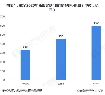目前,门窗市场的定制概念已经浮出水面,一些创新才能比较强、市场敏感度比较高的门窗厂家已经介入了定制领域。近几年定制门窗行业飞速发展,很大程度上得益于二三线城市自建房市场不断发展,与批量化的商品房子相比,农村自建房有愈发强烈的个性化需求、同时也有愈发强多的定制空间。再加上定制门窗对家庭的大范围普及,导致定制门窗产品需求总量的高速增长。据相关统计显示,每年国内定制门窗市场总额已达300-350亿元,已占整个门窗市场5%左右的份额,假如到2020年市场份额占比达到8%,将会带来近600亿元的市场,发展前景巨大。(来源:前瞻产业研究院)