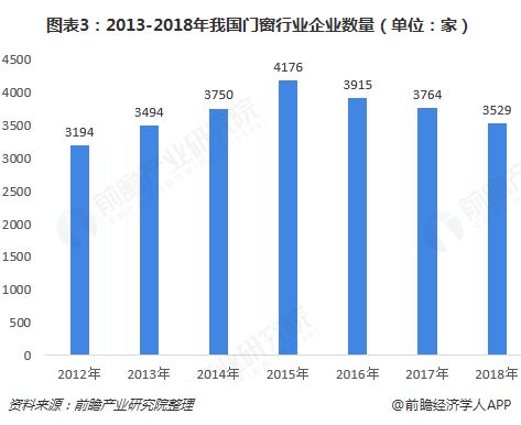 据国家统计局数据显示,自2015年后,我国门窗行业规模以上的企业数量开始持续减少,到2017年下降至3764家,结合房地产市场趋势,预计2018年企业将会继续下降至3529家。