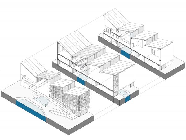 位于中国珠海横琴岛的中心地带,坐落着一片都市村居。 两泊人造湖标志着村庄的入口,社区中心就坐落在这两水体之间,连接村民、环境和活动。