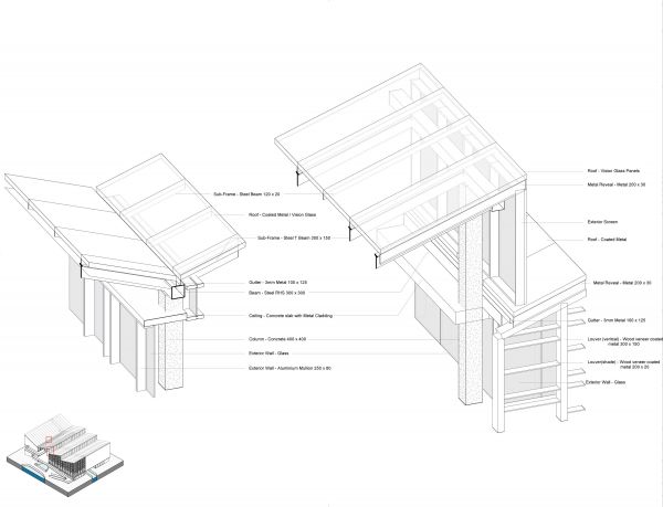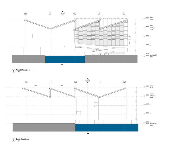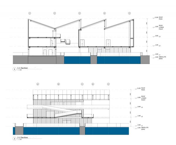 不同区域之间主要通过人行坡道连接,方便进出。斜坡屋顶描绘出山脉的轮廓。当清晨太阳冉冉升起,光线穿越建筑中庭,洒落于湖面之上。