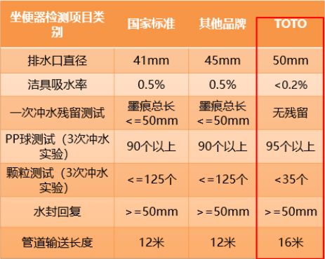 TOTO:精益求精,在符合国家标准的前提下,确保绝大多数产品性能优于国标标准要求,以TOTO坐便器CW166B为例: