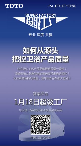 见证TOTO实力,学习万科供应商考察标准流程,采筑诚邀您与万科在内的联采客户一起:聆听行业专家分享干货,全流程见证TOTO陶瓷和卫洗丽工厂生产“匠心”,感受日系品牌产品力,看采筑联合招标如何把好供应商考察这第一道关。