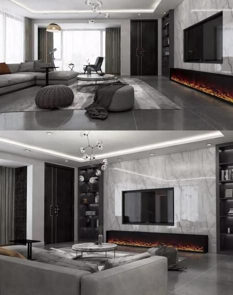 宽敞的客厅没有过多的修饰,让一切看起来都是那么的刚好,白色大理石背景墙与极具时代性壁炉结合,VARIO万骊家居黑色的柜体,营造出极简平衡而又独特的美感。大面的落地窗拥有极佳的视野,黑白灰色调的运用赋予了空间独特的雅韵和品质感。