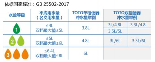 此外,TOTO在生产工艺和产品性能上致力于节水降能,努力减轻对环境的影响,产品性能指标如下图所示: