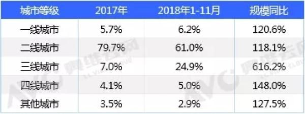 2018年1-11月精装修市场壁挂炉产品分城市等级配套份额