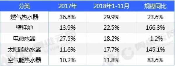 壁挂炉市场份额增长较快,直追燃热,同比增长166.3%