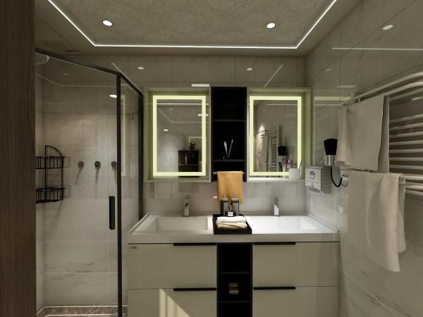 ▲ 双台盆浴室柜,忙碌的晨间时光两人共用也能井然有序,再也不用赶着对方去边上洗牙洗漱。选用灯带的镜子则为需要在浴室间,完成护肤、化妆的周太太,提供一个更为明亮的环境,出门前撸个美美的妆,保持一天的好状态;