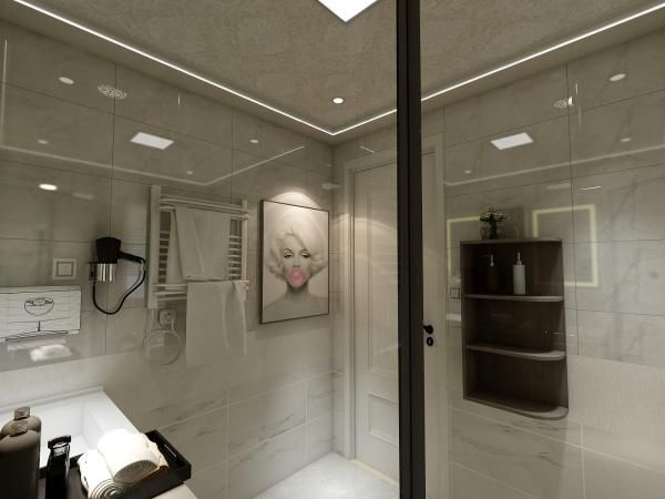 设计理念:简约大方的装修风格,空间上化繁为简,选择轻便型浴室家具,保持小户型空间明亮通透感。周太太一家居住在寸土寸金的广州,所以卫生间的每一个地方在做设计的时候都会利用起来,做到不浪费又合理,使用便捷又舒适。