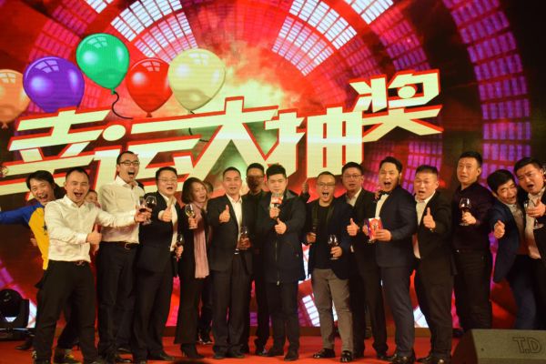此后集团董事长徐建刚总带领常务副总裁赵红平总、营运中心刘思才总、招商中心周俊军总、广东区域王伟总以及各店商总登台祝酒环节更是把整体气氛推向了小高潮,王伟总表示未来广东区域将齐心协力,不负众望,再创辉煌。
