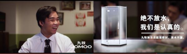 另外两则视频同样角度新颖,立意有趣,将“浴室戏精”贯彻到底:从太极中的推拉招式、麻将桌上的放水行为一一对应九牧淋浴房的易推拉门、绝对密封房体两大特点。