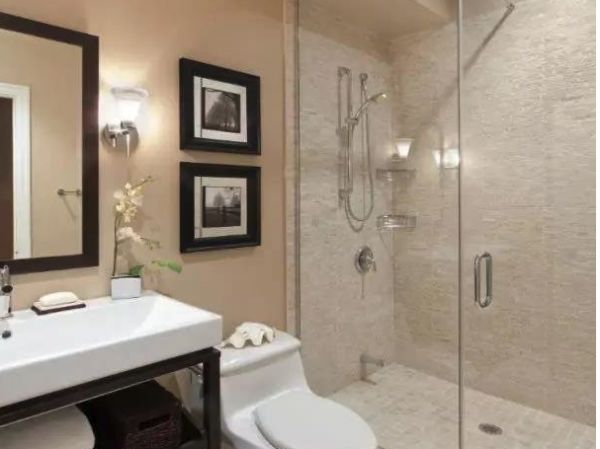防水石膏板是除铝扣板外应用得比较多的,干干净净大白顶,效果同客厅、卧室等房间无异。尤其在美式风格的装修中,石膏板吊顶很受欢迎,因为可以和石膏线衔接得很完美,做造型好看。
