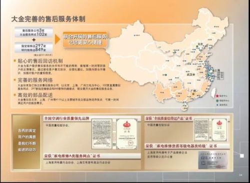 密度庞大的网点体系力求确保中国每个地方的用户,都能在第一时间最快得到妥善的售后服务处理,节省沟通成本,提高故障排查效率。大金希望:在世界的任何地方,客户身边都有DAIKIN。