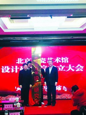北京市文化和旅游局党组书记陈冬(右)与北京陶瓷艺术馆创始人陈进林(左)共同为北京陶瓷艺术馆设计研究院揭牌