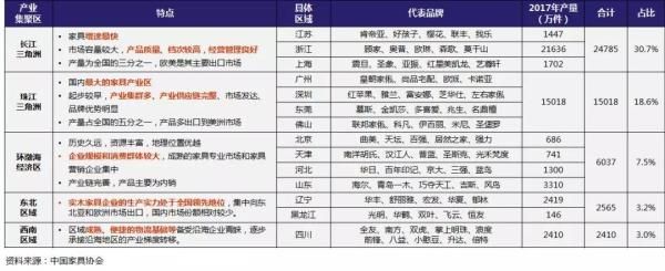 中国家具市场产能集中,产生了五大家具产业集群,集中了中国90%的家具产能,是供应国内家具市场和家具出口的主要地区。