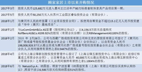 抢占市场,首先要扩大产能。为了进一步完善产品配套体系,顾家家居诞生的床垫——1号垫,意味着其早已不限于沙发行业。顾家家居在上市后就开展了一系列收购、兼并活动,2018年末更是拟收购喜临门,聚合资本、客户、渠道、品牌、信息化等方面的优势,通过技术、市场创新,打造丰富的产品线,全方位满足消费者多品类的购买需求。顾家的目标,从客厅到卧室甚至是全屋。