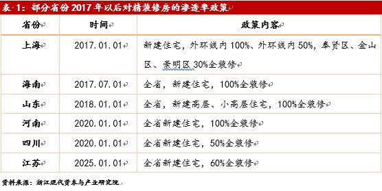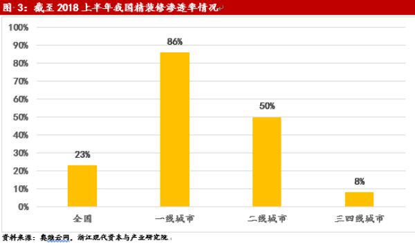 2018年一二线城市的精装修渗透率已超过五成,一线城市甚至已接近九成。2018年上半年,全国出台精装修政策的省(市)已达19个,对全装修住宅比例提出了明确要求。随着政策支持、消费升级的市场驱动,相信精装修住宅的渗透率将在2019年及未来几年中持续提升。
