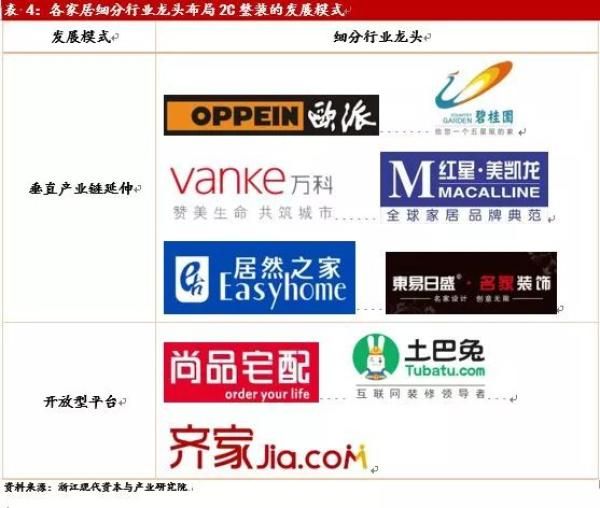 如上所述,发展2C整装主要包括垂直、平台两种模式。各家居细分行业龙头目前选择的发展方式如下: