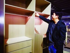 在厂房内,肯达·米兰木饰面总经理杨晓龙揭晓柜板的生产工艺