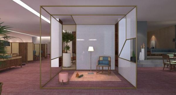 兰心,源于“蕙质兰心”,寓意指人的品格,取其淑美纯洁、如兰高雅,在这个设计中软包柔和、多颜色素雅、气质温婉,融合满月、竹编、围屏等元素,这些元素自带文化记忆、手作温度,予人温情、舒适之感。