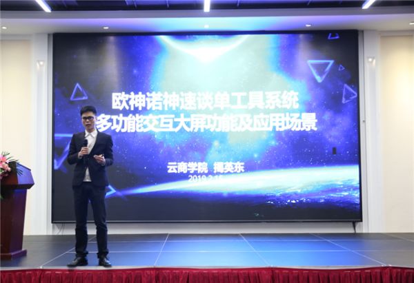 工具的改变意味着对人要求的提升,正视工具,掌握工具,才能发挥工具价值。欧神诺策划部总监章艾在会议上通过幽默的互动,让大家重新认知了“神速谈单多功能交互大屏”的运用场景与逻辑,将日常的经营痛点,与工具的功能特点一一对应,让大家对大屏的功能与特色深刻理解。