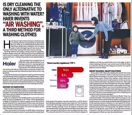 空气洗作为卡萨帝针对高端衣物护理研发的全新护理方案,打破衣物不敢水洗、干洗的尴尬困境,实现了行业“质的飞跃”,解决高端衣物护理难题。吸引了众多用户关注点赞,更是连续登上国外媒体头条。