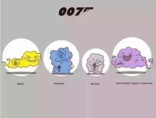 根据现代科学研究表明:在装饰所用的许多建筑材料中含有有毒或放射性的物质,这些有害物质种类繁多,常见的有10种以上,如甲醛、氡、氨、苯、TVOC等: