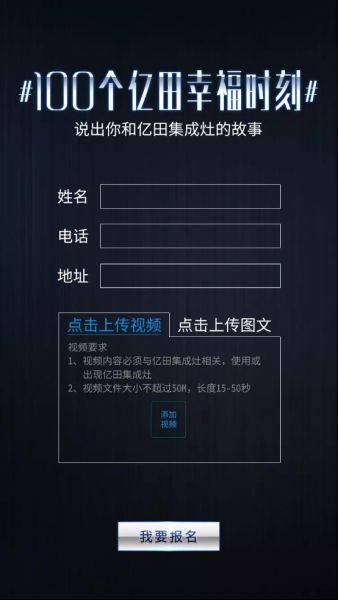 进入报名通道。留下你和家人与亿田的幸福故事,我们将抽取100个幸运家庭,为幸福厨房发声。
