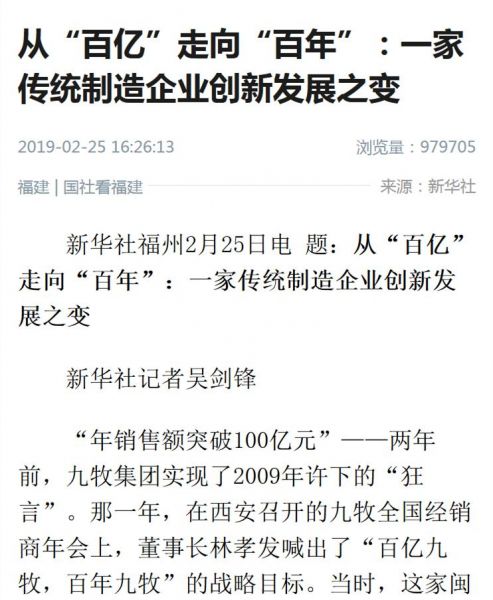 2月25-26日,央视《新闻联播》、新华社、人民日报、光明日报、经济日报等中央党媒在重要版面、重要时段深度聚焦九牧自主创新、高质量发展,实现转型升级的典型经验,探寻九牧创新的基因。