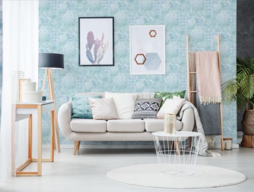 灵感来源于自然界的水,水汽弥漫,朦胧中的温柔美,如同柔软温和的水象星座,蓝绿色是水象星座的幸运色,清新雅致,明亮舒适的配色,运用在家居空间中有助于增强财运能量。