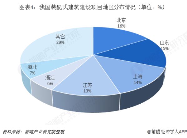 从区域结构来看,由于我国华东地区整体经济发展水平较高,同时拥有较为完善的交通运输网络,而建筑业的发展离不开经济基础的支撑,因此使得华东地区成为我国装配式建筑建设项目最多的地区,占比达到48%。