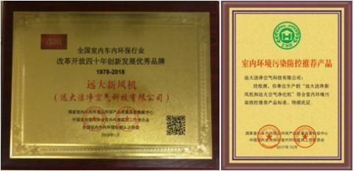 凭借着对空气净化产品技术研发的前瞻性和研发成果,远大洁净空气也收获了多项国家奖项,包括“全国室内车内环保行业改革开放四十年创新发展优秀品牌”、“室内环境污染防控推荐产品”等等,并携手中国建筑科学院共同承担了"十三五"国家科技支撑计划课题"建筑室内空气质量控制的基础理论和关键技术研究(2017YFC0702700)"的研究工作。