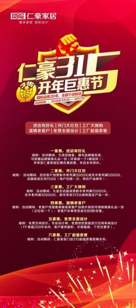 仁豪领导针对相关部门, 做了整体战略部署。要求做好“仁豪315,开年巨惠节”全国促销活动,此次促销活动,促销“六大促销主题,让利一个亿”,是历年少有的大促销力度。仁豪整体家居,国际品质,20年厚积薄发,选择各种经典、畅销、爆品产品,“巨惠”消费者,成就消费者315品质权益日。对于此阶段购买家居的消费者,是一个“实惠、优化”购买产品的大好机会。