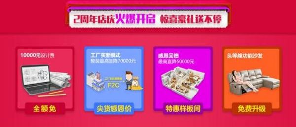 全包圆两周年庆典,不仅价格便宜、质量优质,还有全方位的贴心服务,聘用专业设计团队为装修业主们进行房屋设计并且免除设计费,还提供免费仓储服务。